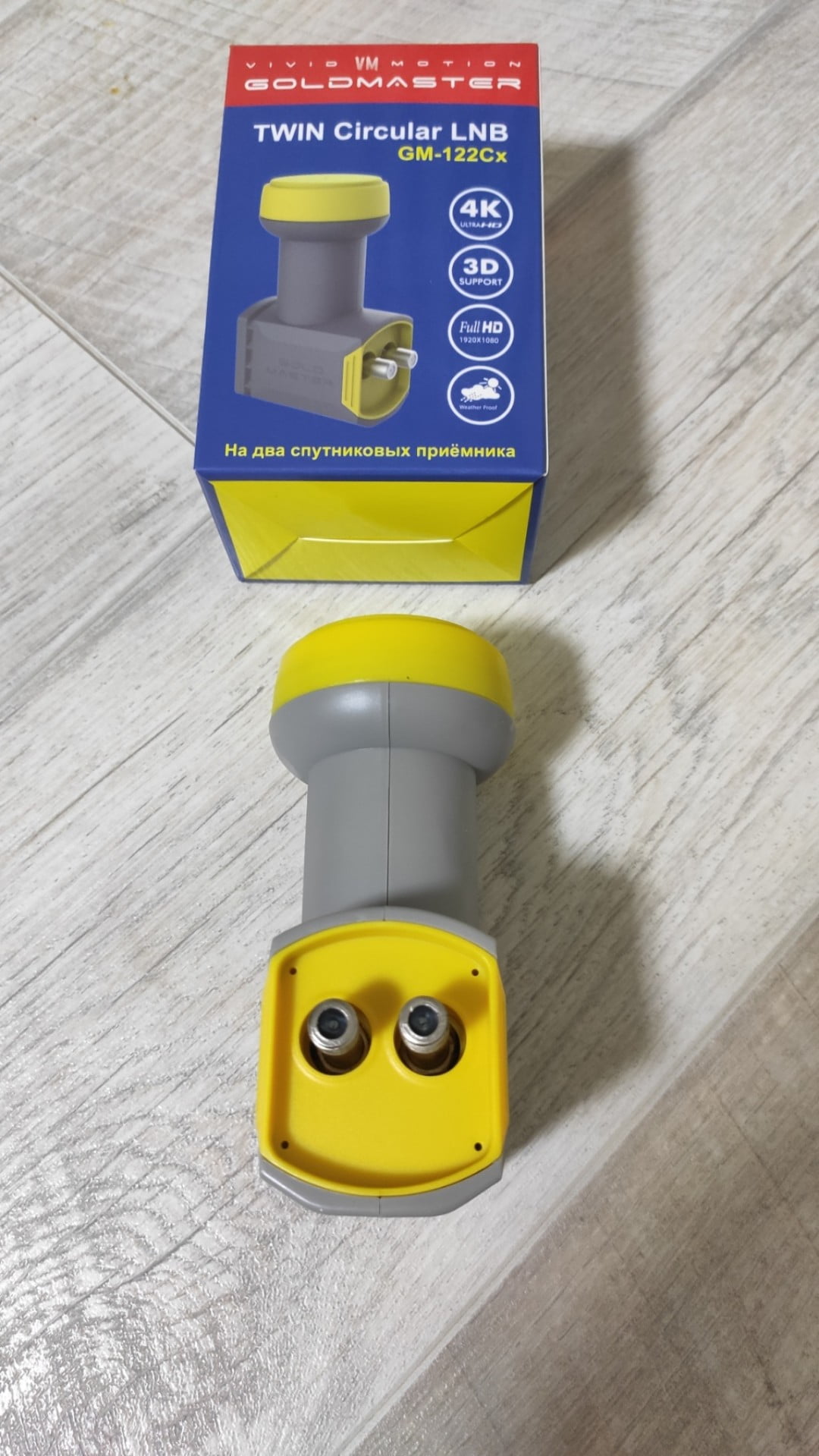 GoldMaster GM-122Cx (круговой Ku конвертор) отличается от модели GoldMaster GM-122C применением более современной элементной базы, в результате чего у него улучшены основные рабочие параметры, а также повышена эксплуатационная стабильность. Устанавливается для независимого приема сигналов в круговой поляризации со спутника на два отдельных спутниковых ресивера или двухтюнерный вариант ресивера. Конвертор работает только в верхнем Ku диапазоне и подходит для приема каналов операторов: НТВ Плюс, НТВ Плюс Восток, НТВ Плюс Дальний Восток, Триколор ТВ и Триколор ТВ Сибирь. Неприхотлив и надежен в эксплуатации, при этом он обладает влагозащищенным корпусом.