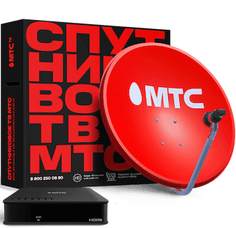 Все необходимое для подключения спутникового ТВ МТС: антенна, конвертер, кабели и разъемы, HD-приставка со SMART-картой.