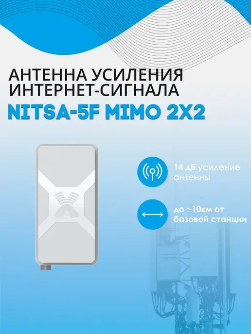 Первая универсальная выносная антенна NITSA-5F MIMO 2x2 с поддержкой LTE-A (до 300 Мб/с). Рекомендуется к использованию на расстояниях до 10 км от базовой станции. Антенна NITSA-5F MIMO 2x2 предназначена для использования в комплекте c модемами или репитерами стандартов: