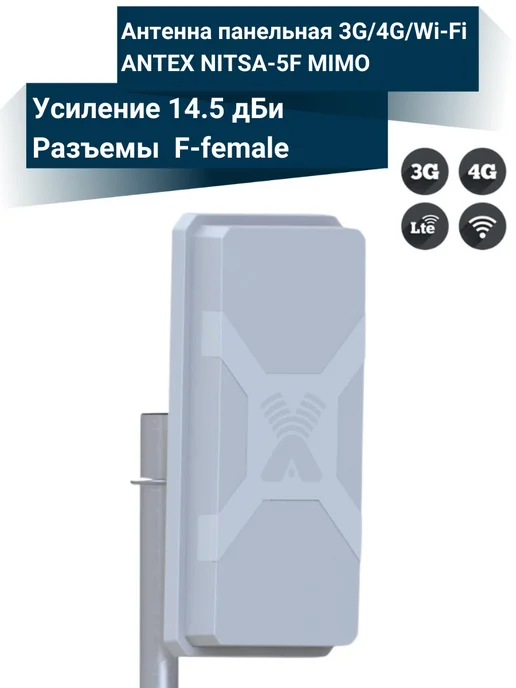 Панельная антенна Antex Nitsa-5 MIMO 2x2 или аналог— усиливает сигнал сотовой сети, улучшает качество связи и увеличивает скорость.
