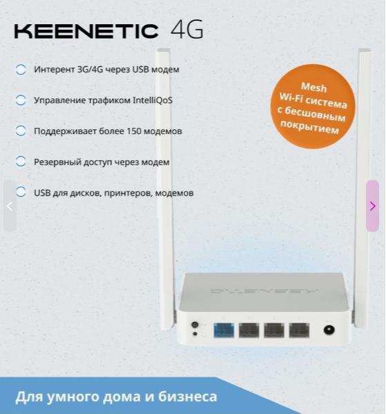Роутер Wi-Fi Keenetic 4G KN-1212