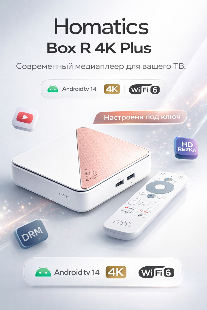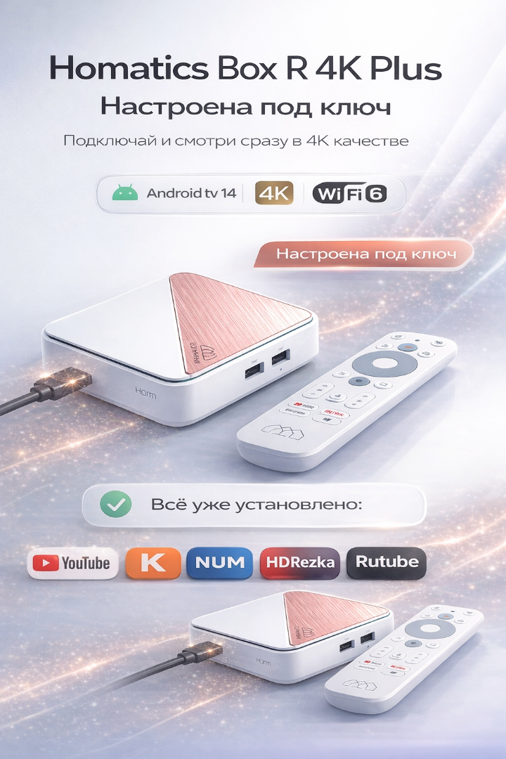 Homatics Box R 4K Plus — это отличное решение для тех, кто хочет сделать свой телевизор «умным» и наслаждаться качественным контентом в высоком разрешении. Отличный выбор для вашего дома и офиса!