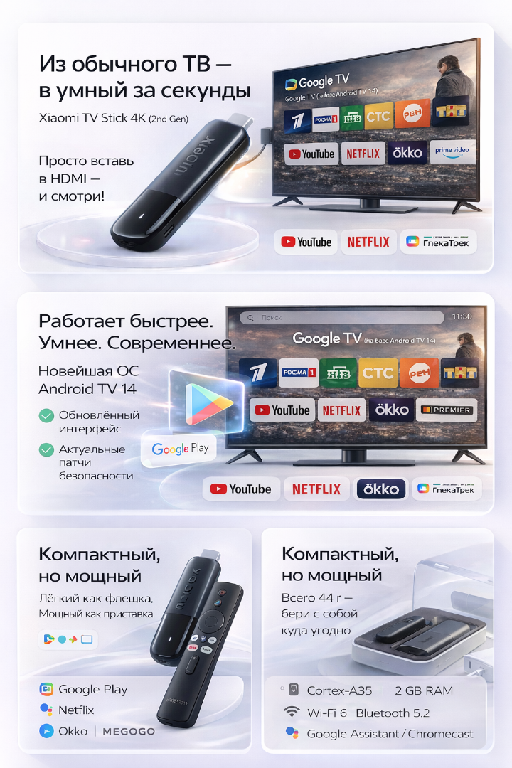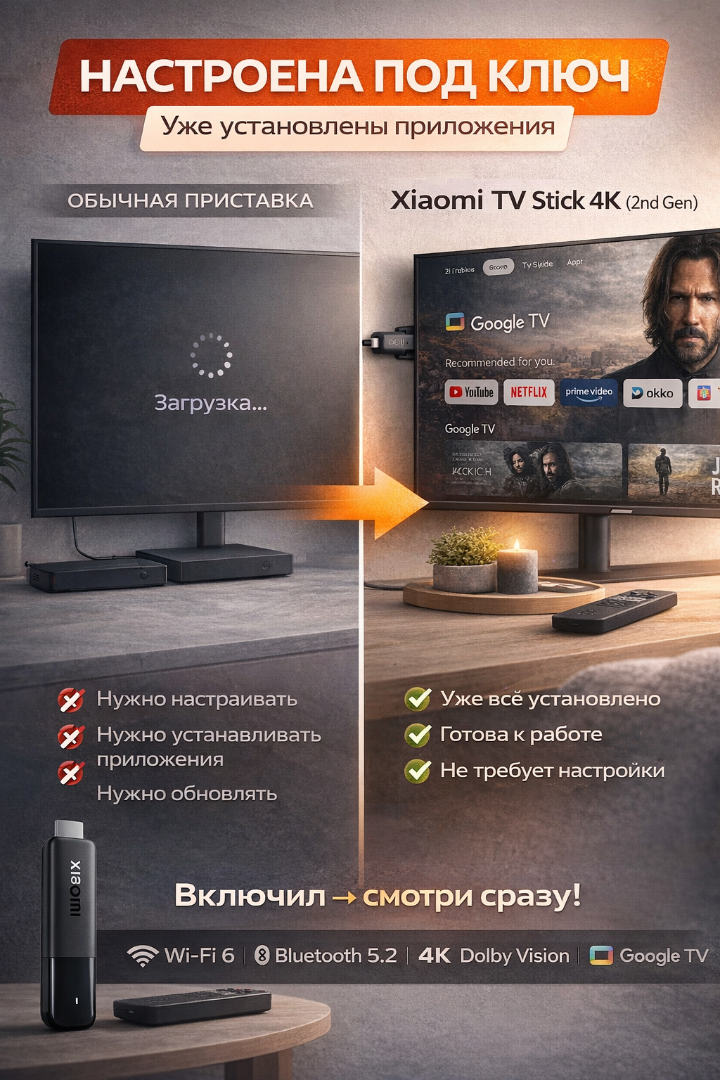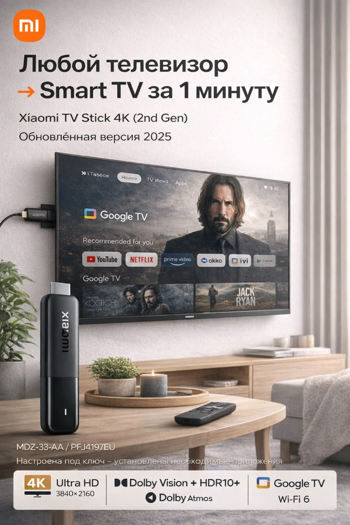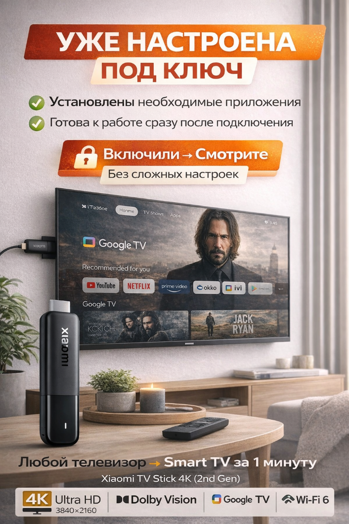 Смарт-приставка Xiaomi TV Stick 4K 2nd Gen (MDZ-33-AA) — настроена «Под ключ»