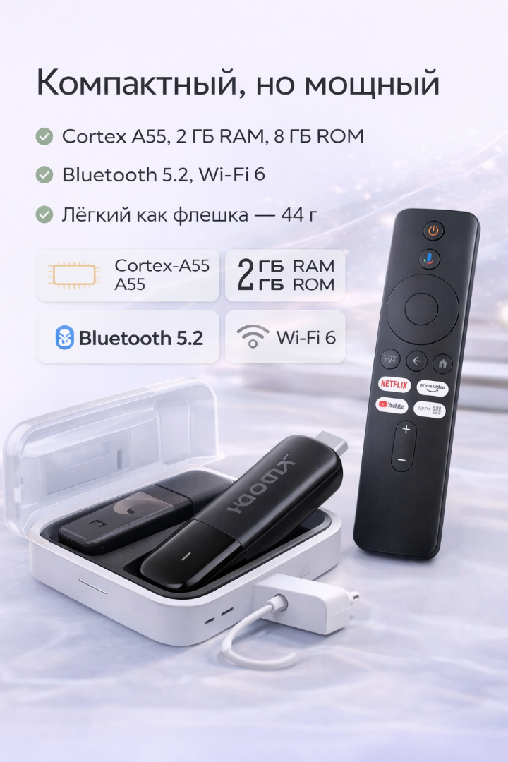 Благодаря весу всего 44 г и миниатюрному дизайну, стик легко взять с собой в поездку или на дачу.