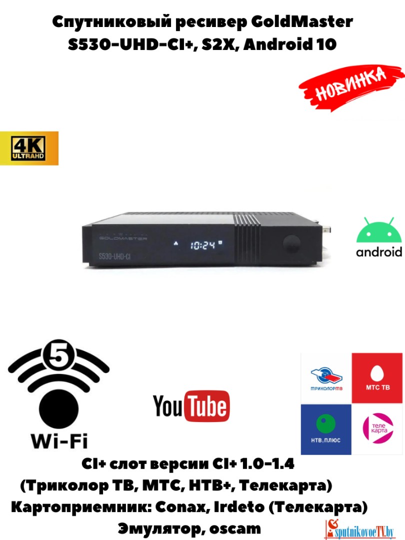 Спутниковый 4K UHD ресивер с поддержкой официальных модулей НТВ плюс, Телекарта, Триколор ТВ, МТС ТВ CI+