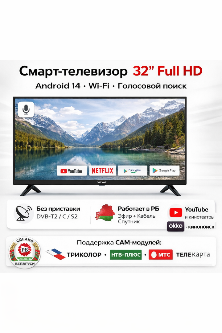 Смарт-телевизор Витязь 32LF1224: Full HD и Android 14
